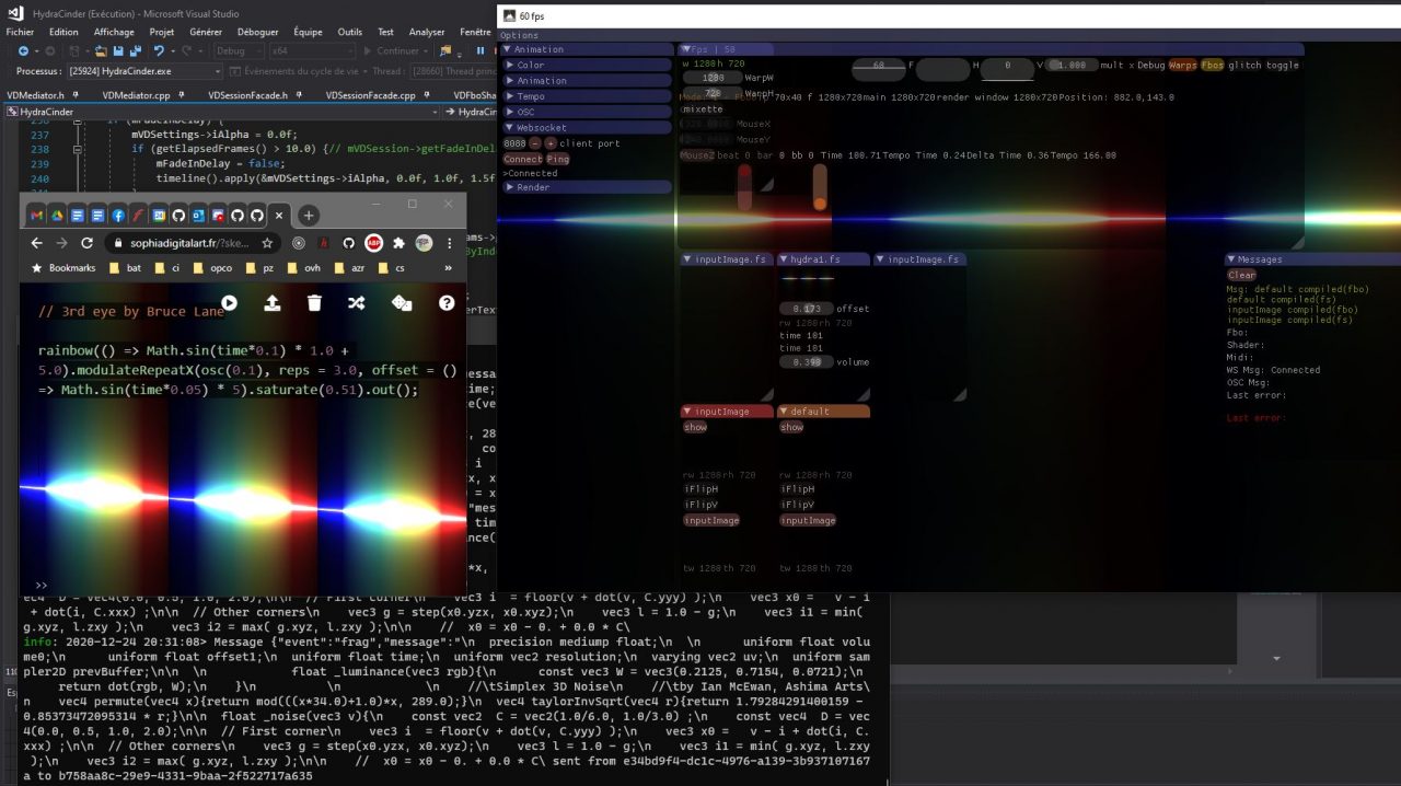 Enjoying Hydra as a browser-based live-coding app, I added websocket support to allow the output to stream to my Videodrömm Cinder app.